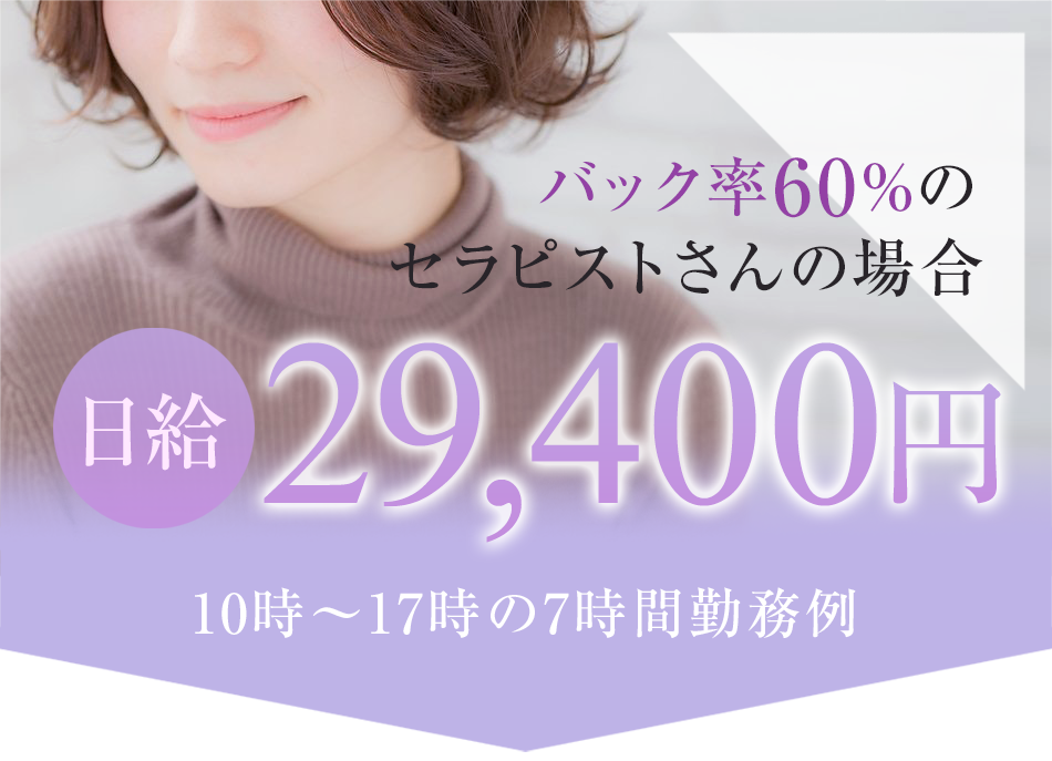 | 19:30〜21:00 90分施術 | 15,000円×70%+本指名(2,000円)=12,500円 |